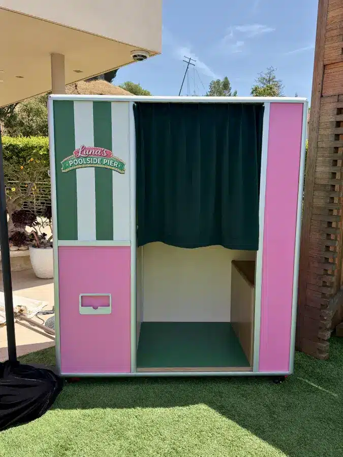 The resurgence is happening across industries. Fashion brands are installing them at pop-up shops and runway events to give attendees a vintage editorial moment that matches the aesthetic of the collection. Beauty companies are using them at product launch parties as a way to put a product in someone’s hands while they wait. Music festivals have made them a staple of the on-site experience, offering something tactile amid a sea of screens. Even corporate events and conference activations are embracing the enclosed booth as a meaningful alternative to the tired green-screen setup.